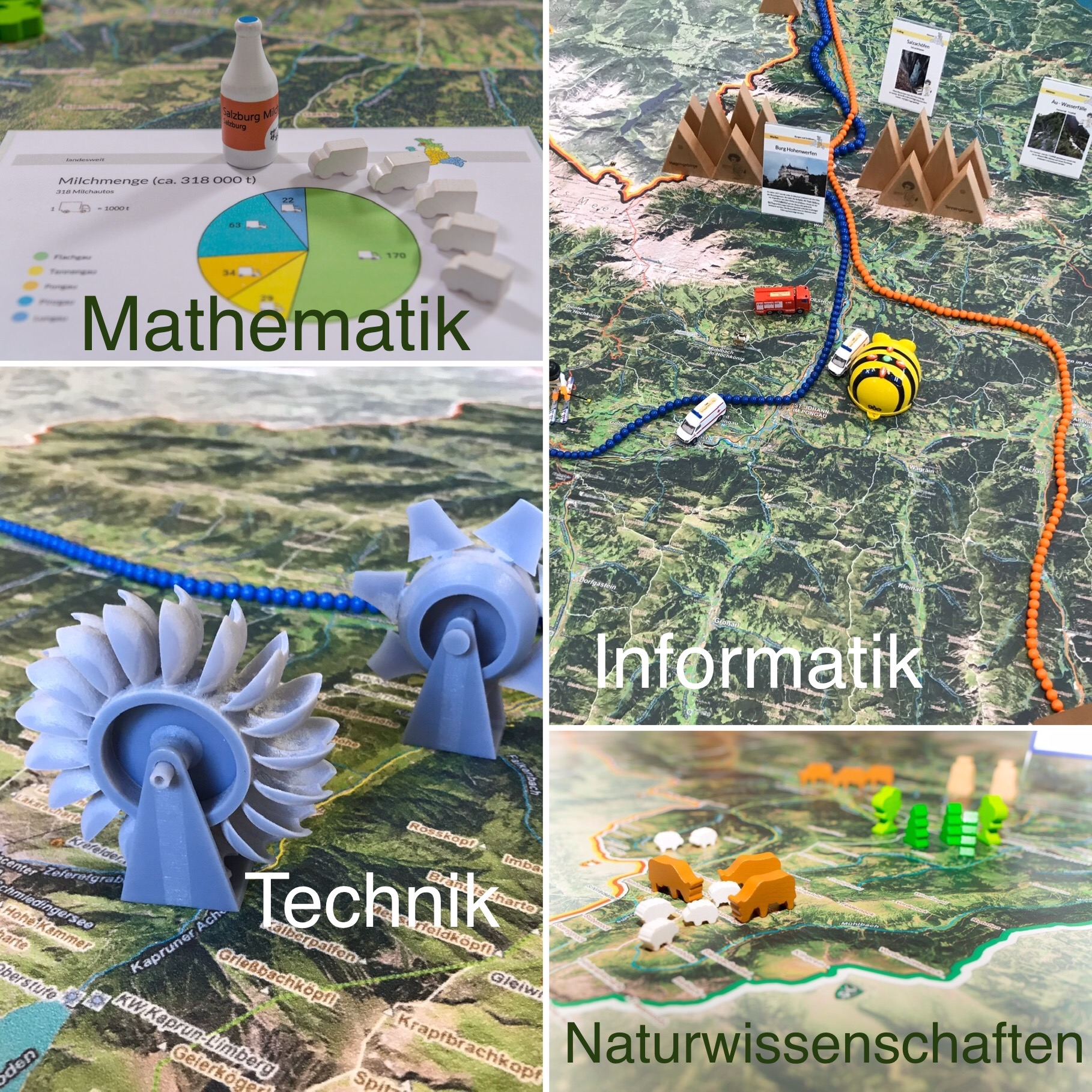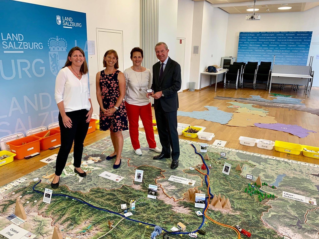 Wir starteten mit dem Satz: „Da legen wir einfach eine Karte auf den Boden und stellen ein paar Gegenstände darauf!“ Mittlerweile arbeitet jede zweite Volksschule in Salzburg mit unserem Material. Seit 2025 sind wir mit „Meine Gemeinde begreifen“ in ganz Österreich unterwegs.